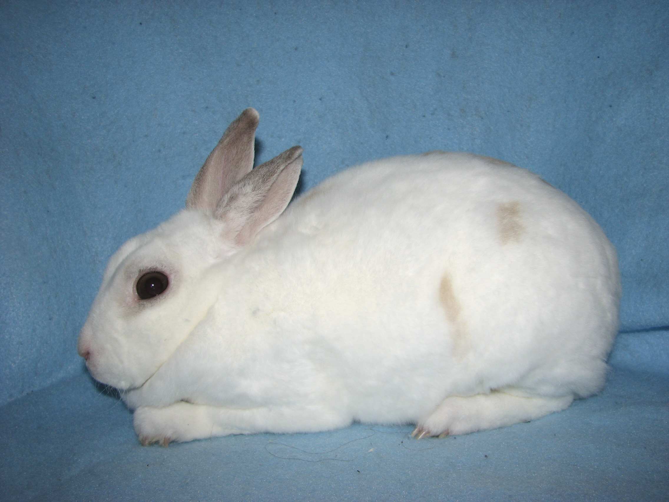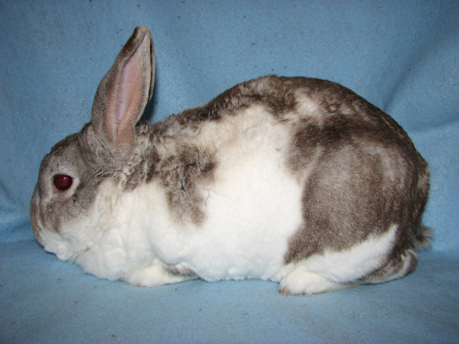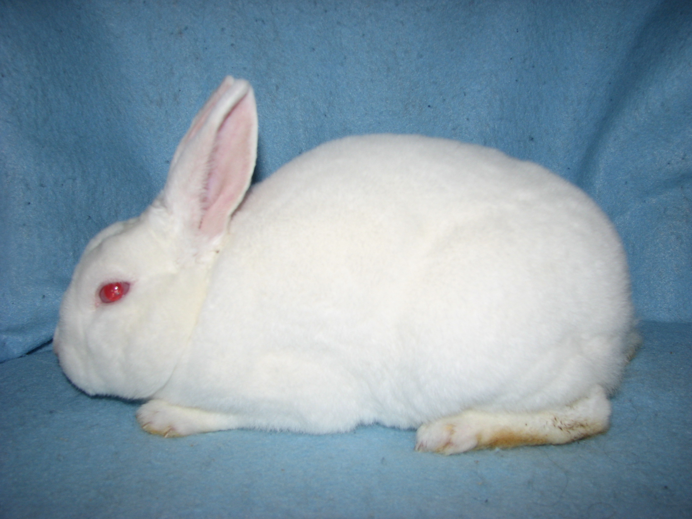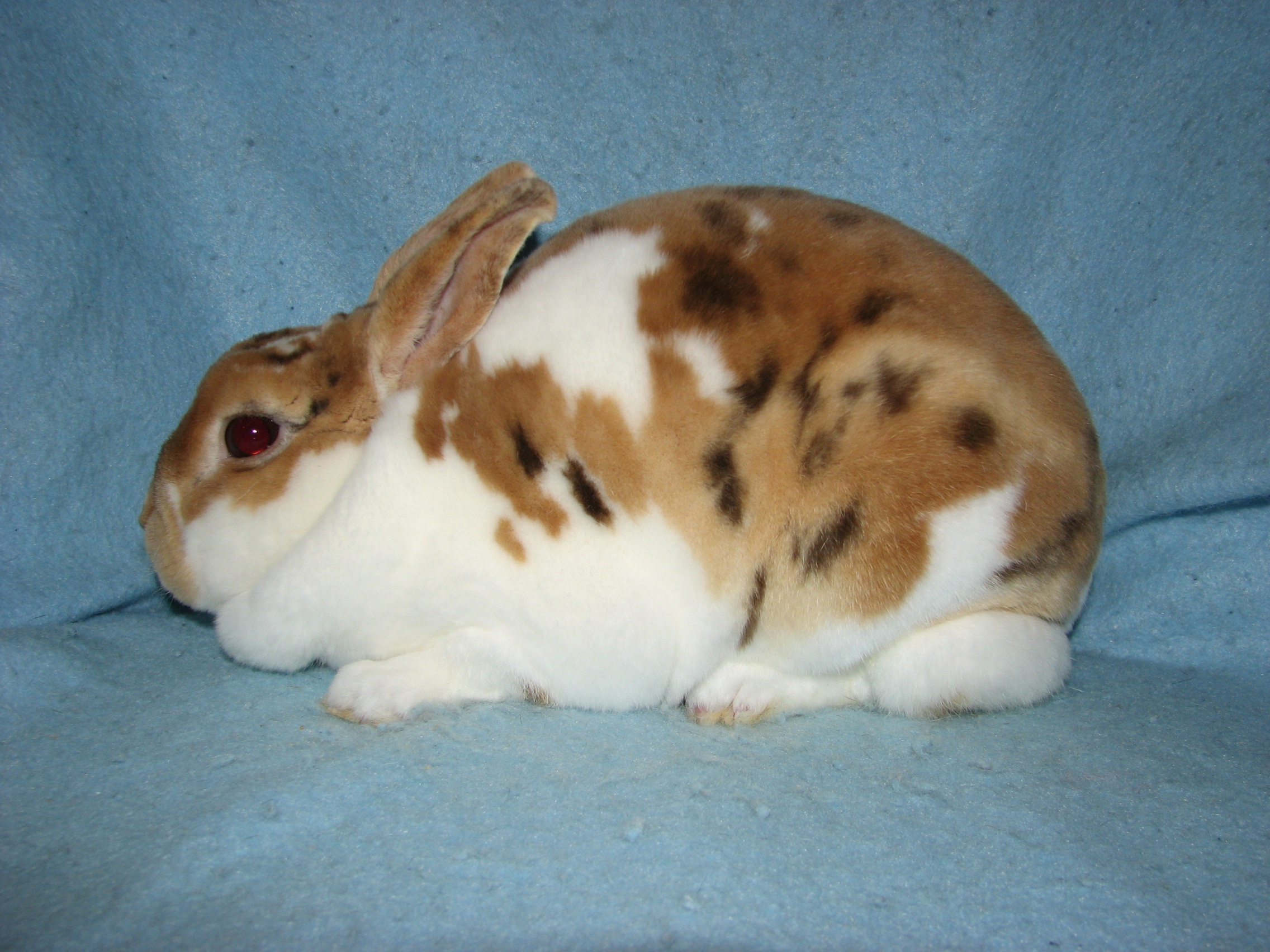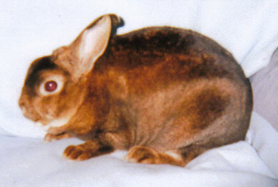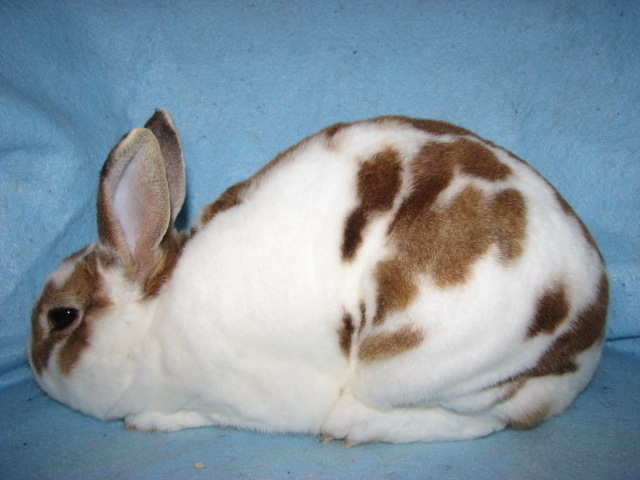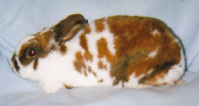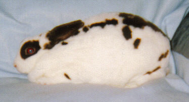 Lacewing had splayed legs and I'm guessing some other unknown issues since she died at only 3 1/2 years of age. She was not used for breeding because of her legs. She was a terrific bunny, though! |