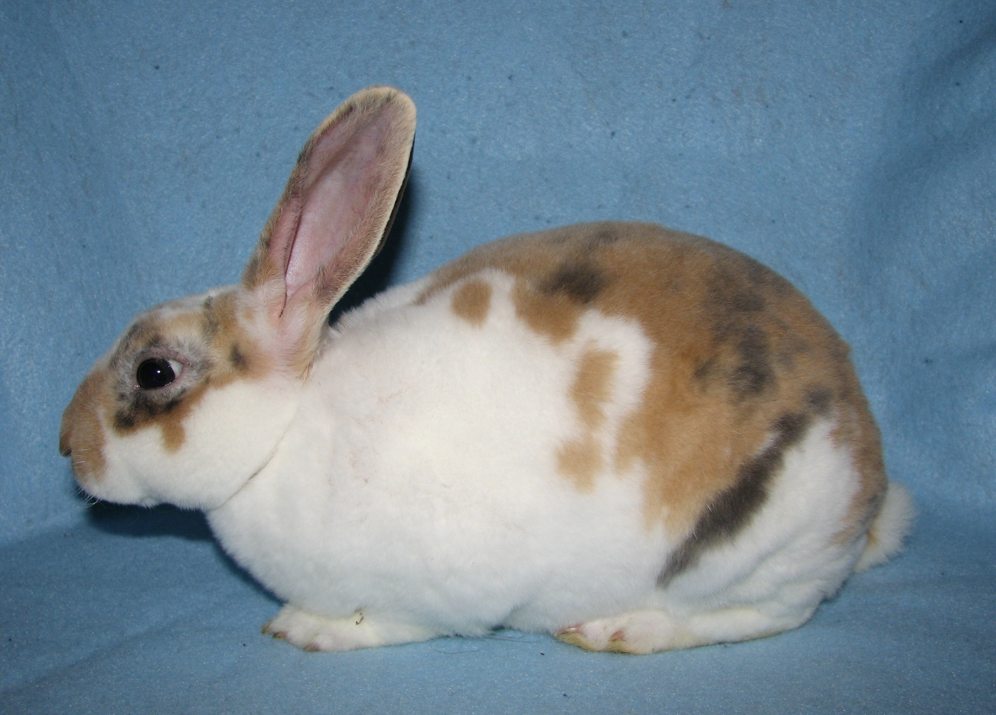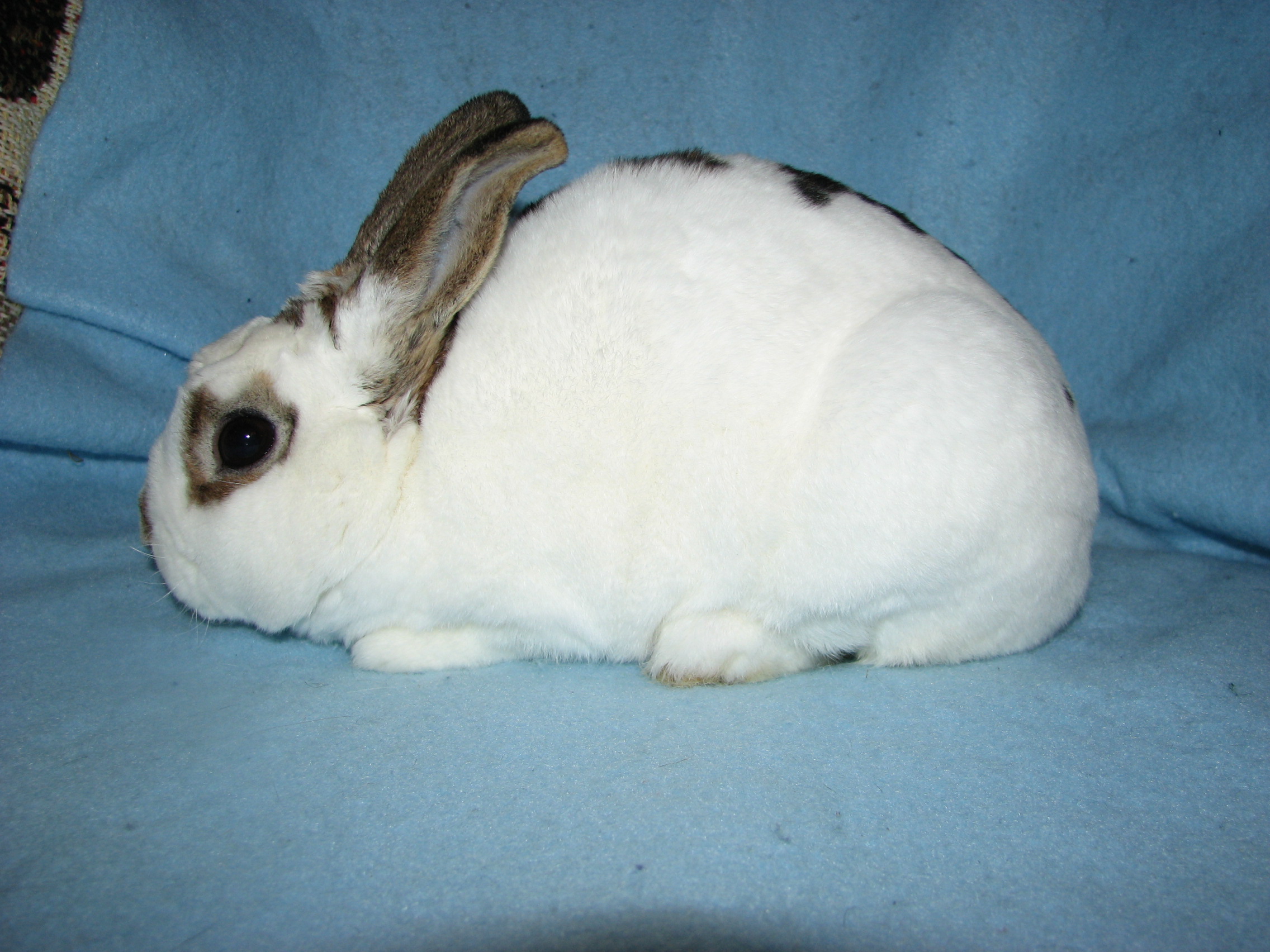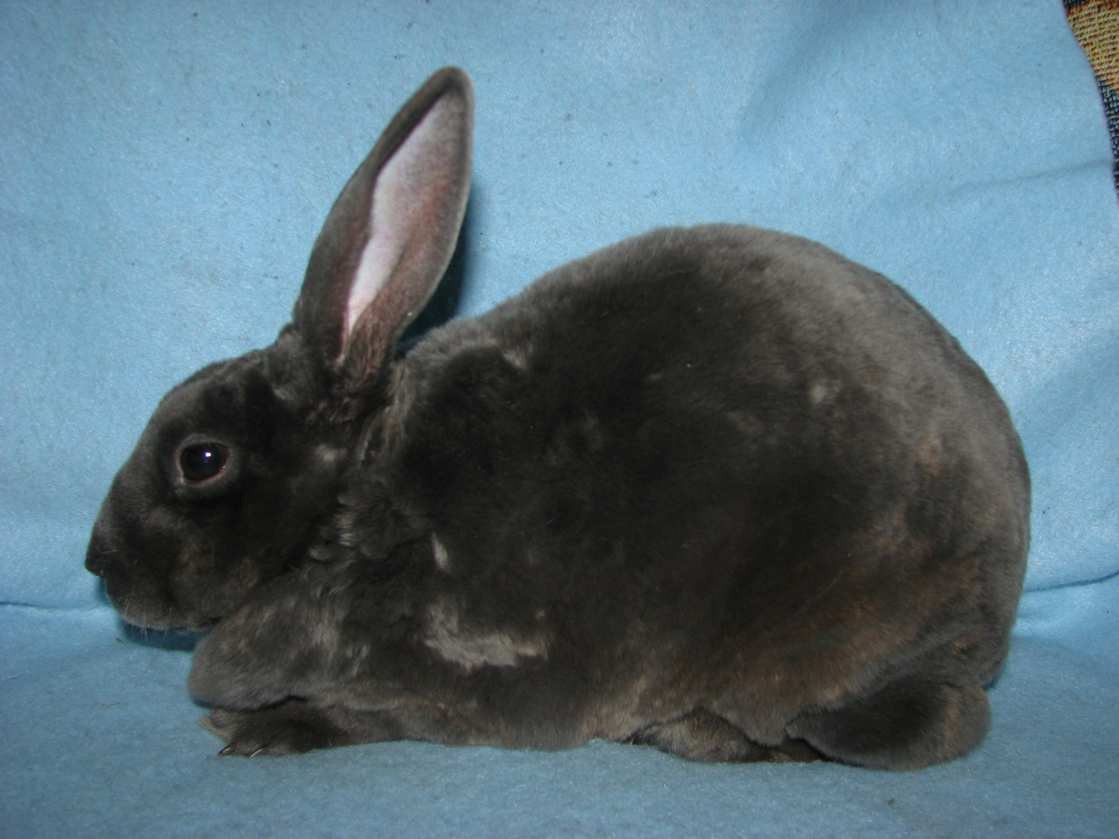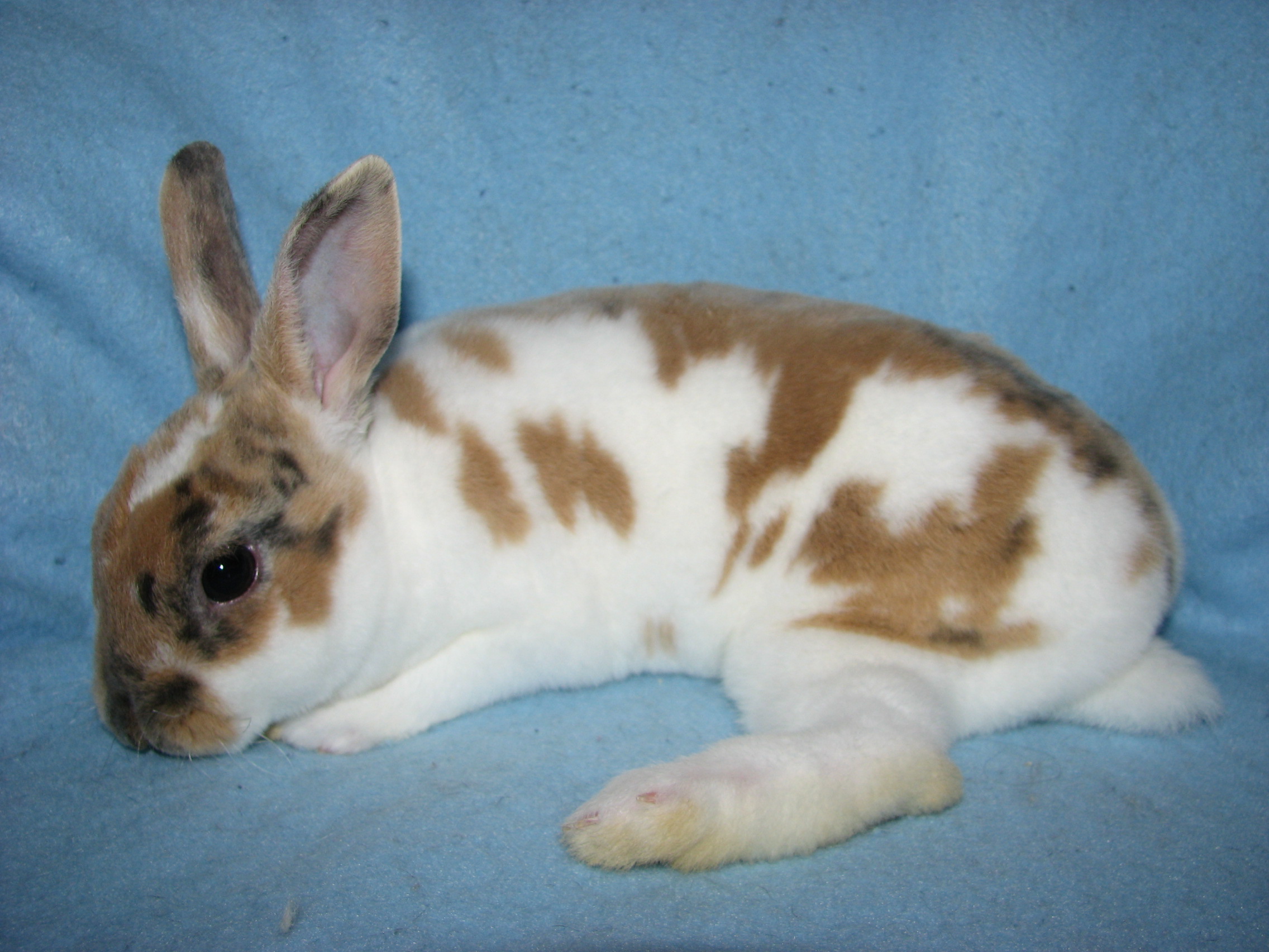 Lacewing had splayed legs and I'm guessing some other unknown issues since she died at only 3 1/2 years of age. She was not used for breeding because of her legs. She was a terrific bunny, though! |
