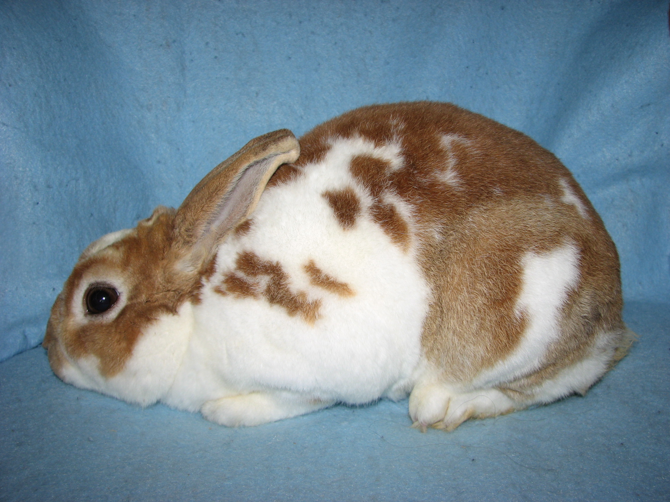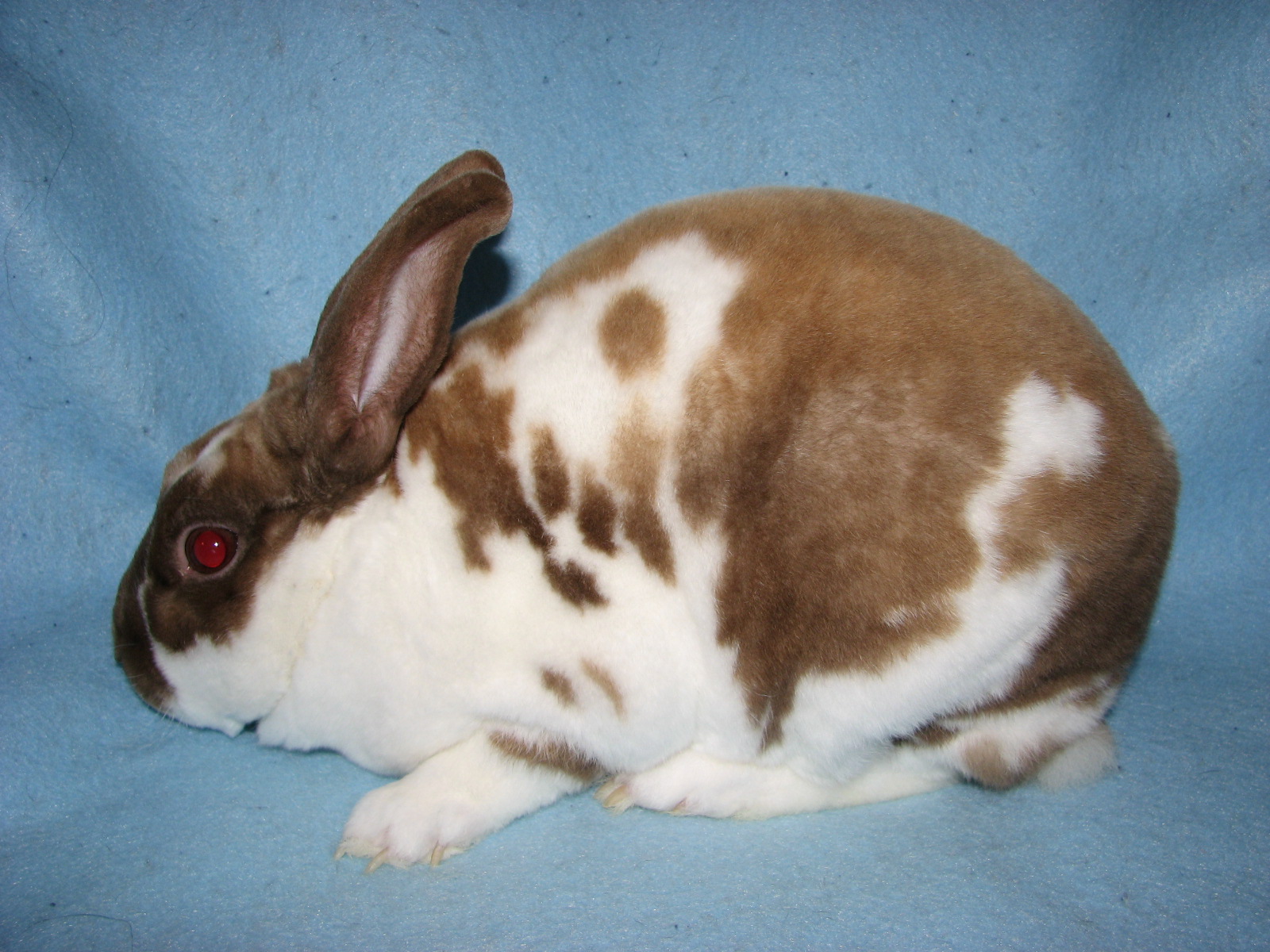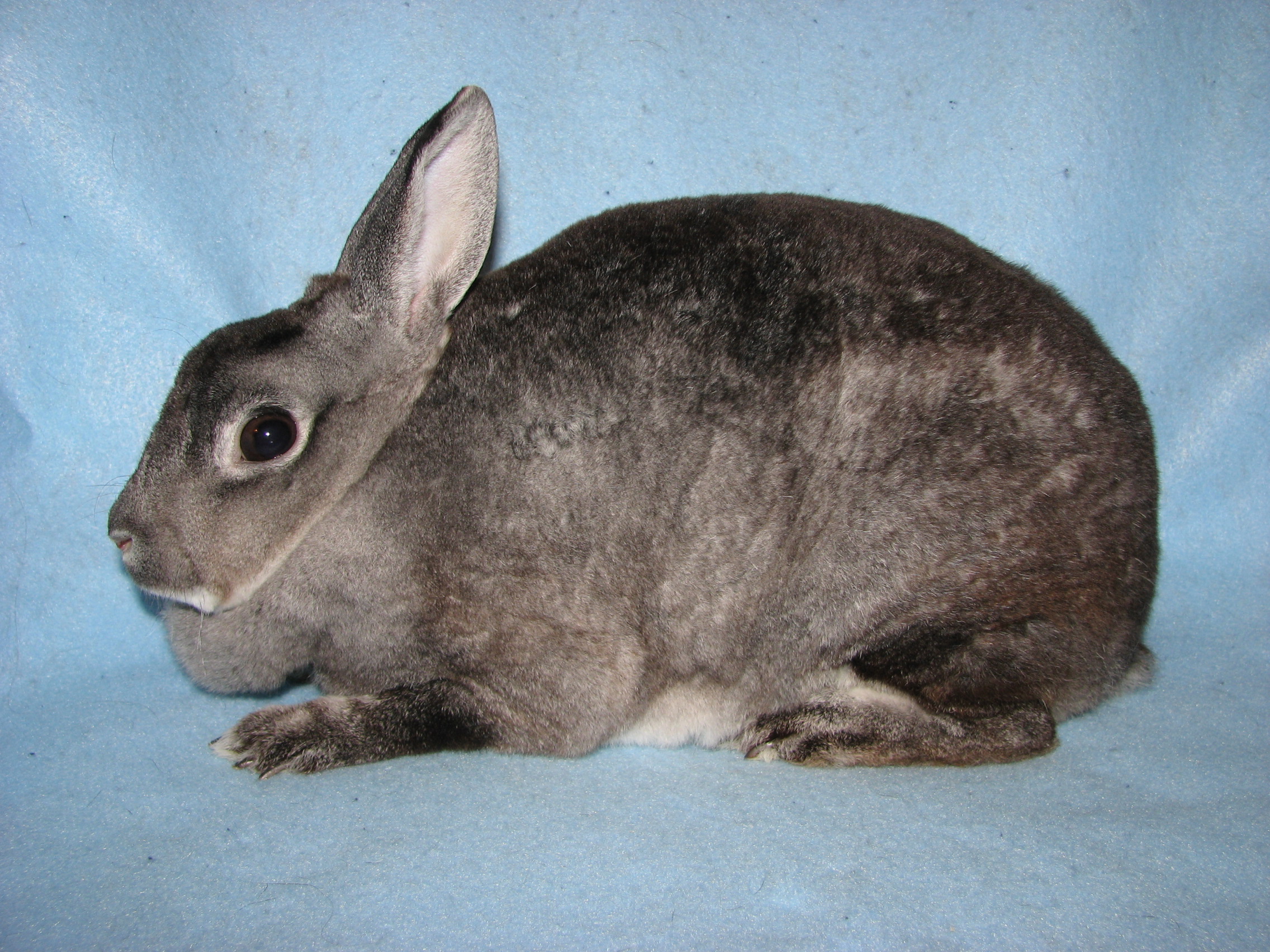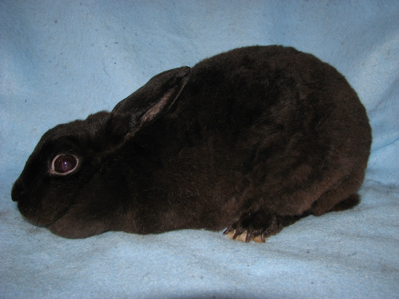 Lacewing had splayed legs and I'm guessing some other unknown issues since she died at only 3 1/2 years of age. She was not used for breeding because of her legs. She was a terrific bunny, though! |